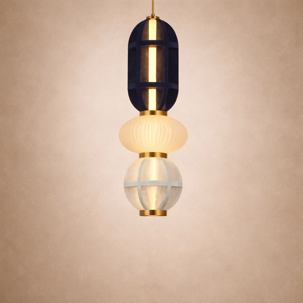 ABENDKUGEL Pendant Light is inspired by the quiet harmony of natural forms at dusk. Layered spherical glass elements create a gentle, flowing composition, while the warm glow evokes the softness of evening light filtering through the landscape