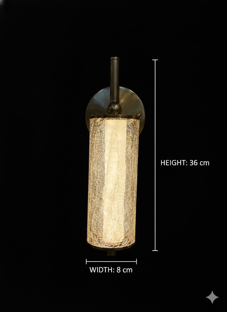 | Textured glass softens the light, creating an elegant vertical presence. |