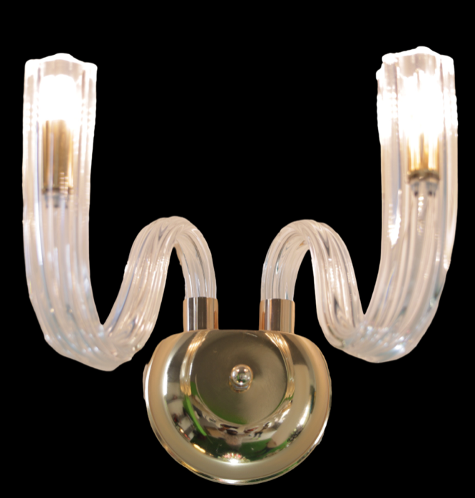 A fluid dance of glass, this wall sconce radiates warmth and elegance through its gently rippled, textured form. The curved design diffuses light softly, creating a tranquil ambiance across the wall.