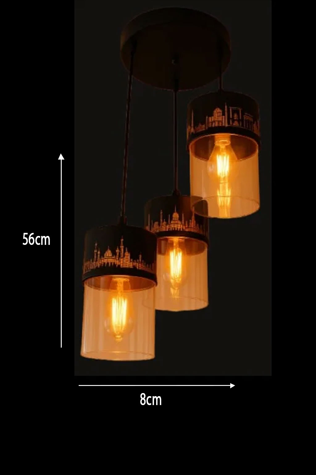 The Crepuscular Metropolis Pendant presents a triptych of amber-tinted, vitreous cylinders, each crowned with an ebonized frieze depicting an intricate urban panorama. Suspended at varying declensions from a unified canopy, these luminaries cast a warm, crepuscular glow, their silhouettes evoking the mystique of a city at twilight. This pendant offers a sophisticated interplay of light, shadow, and architectural intrigue for any elevated interior. Product
