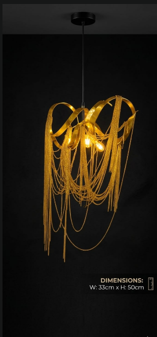 Translating to “Flowing Gold,” this name perfectly describes the way the gold chains appear to pour downwards, creating a dynamic and opulent visual effect.