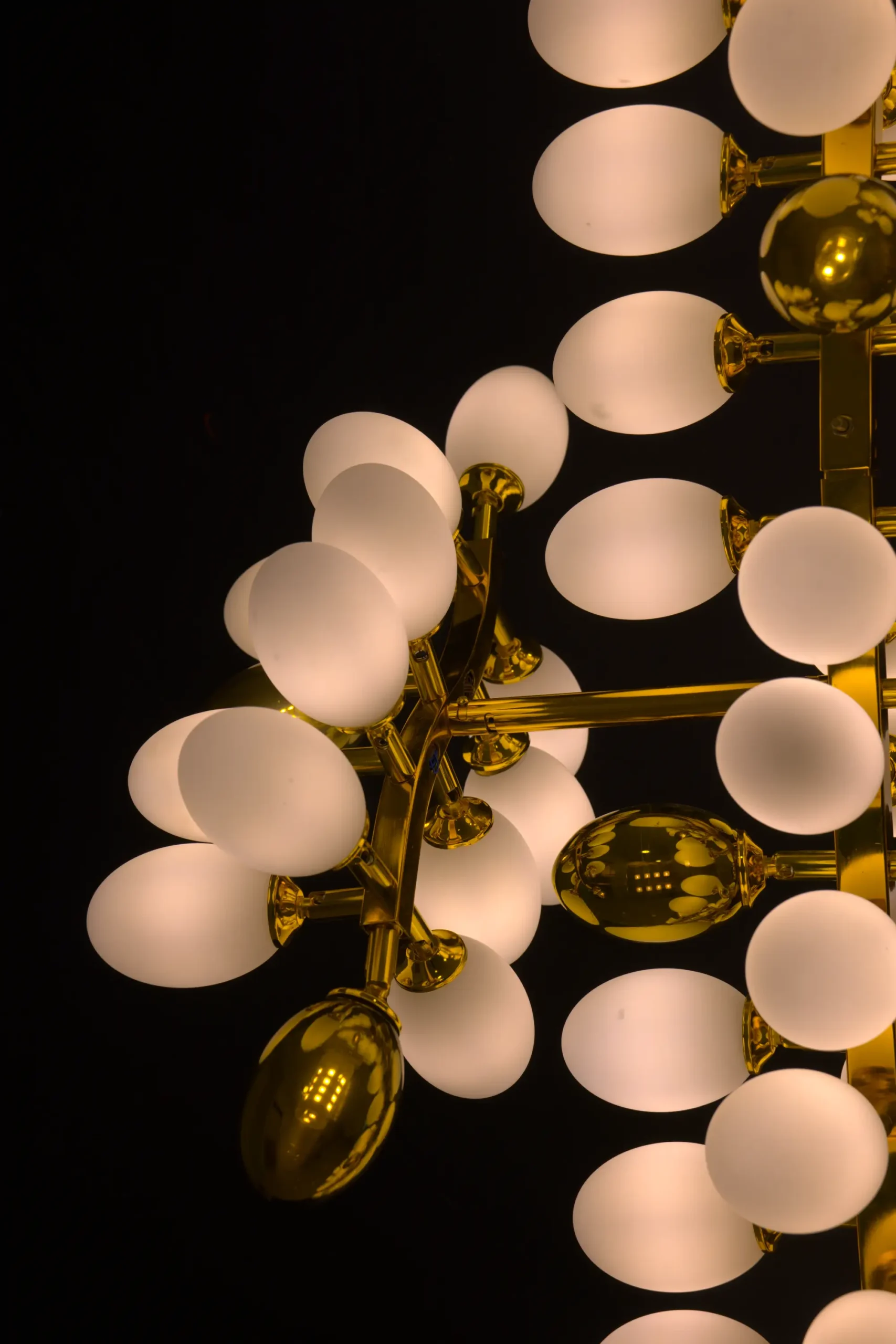 FloraLux Vertica is a breathtaking chandelier that captures the essence of nature in a modern vertical design. Featuring organic, blossom-like glass clusters extending gracefully along a central axis, this piece evokes the image of a blooming vine suspended in air.