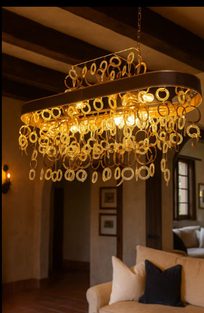 This oval crystal chain chandelier features a metallic frame and numerous hanging crystal links that create a dense, sparkling light. The linear form and glittering crystals lend a grand yet modern ambiance to any room. This fixture is ideal for living and dining areas seeking a statement and luxurious lighting piece.