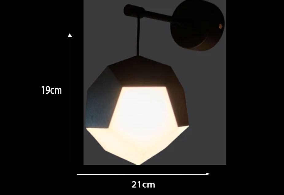 Geometric wall sconce with a polygonal light surface and cool metal accents, ideal for artistic and minimalist spaces.