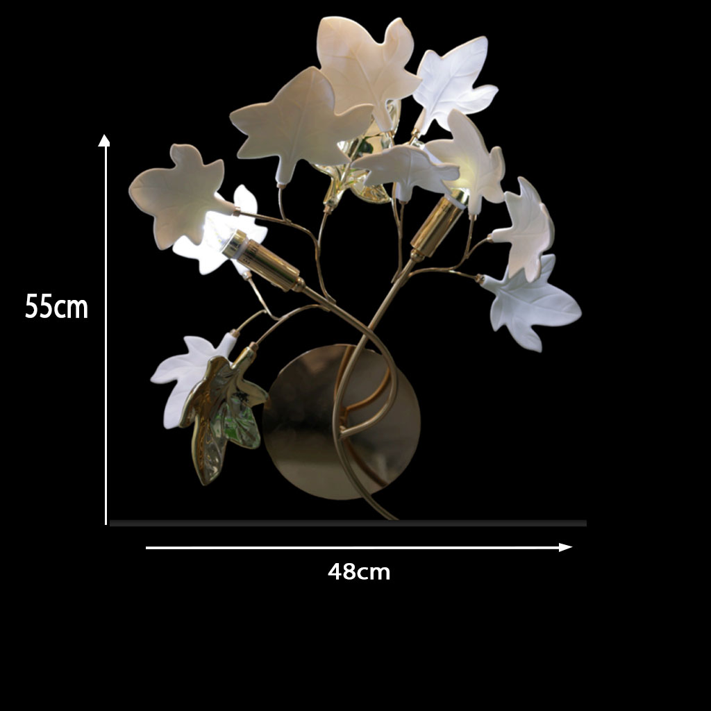 Elegant wall sconce with frosted leaf-shaped diffusers and golden branching arms, perfect for adding ambient warmth and nature-inspired charm to interiors.