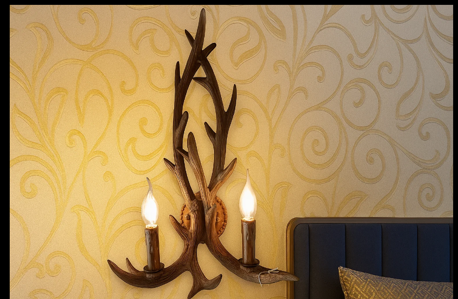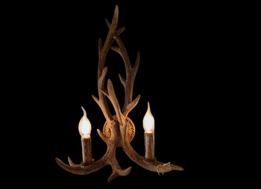 The Ramiform Effulgence Wall Sconce features antler-inspired arms and twin glowing bulbs, blending rustic texture with organic elegance for a sophisticated natural accent.