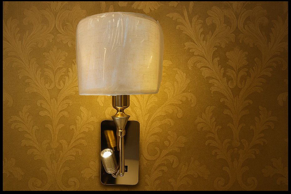 The Slim Brass Accent Sconce combines a compact, rectangular fabric shade with a slender brass arm, offering both style and function. The fabric shade softly diffuses light, creating a gentle ambient glow, while the adjustable spotlight provides focused illumination for tasks or accent lighting.