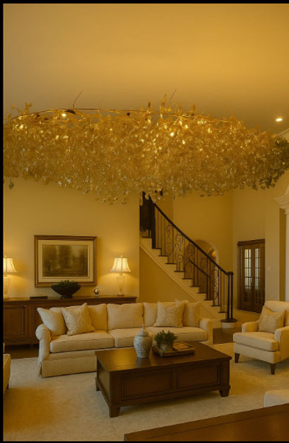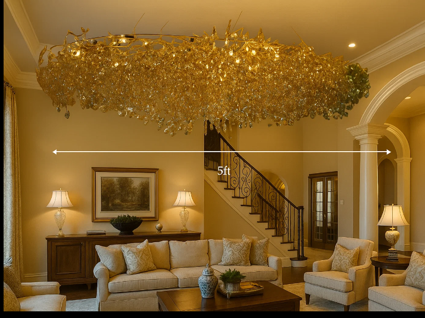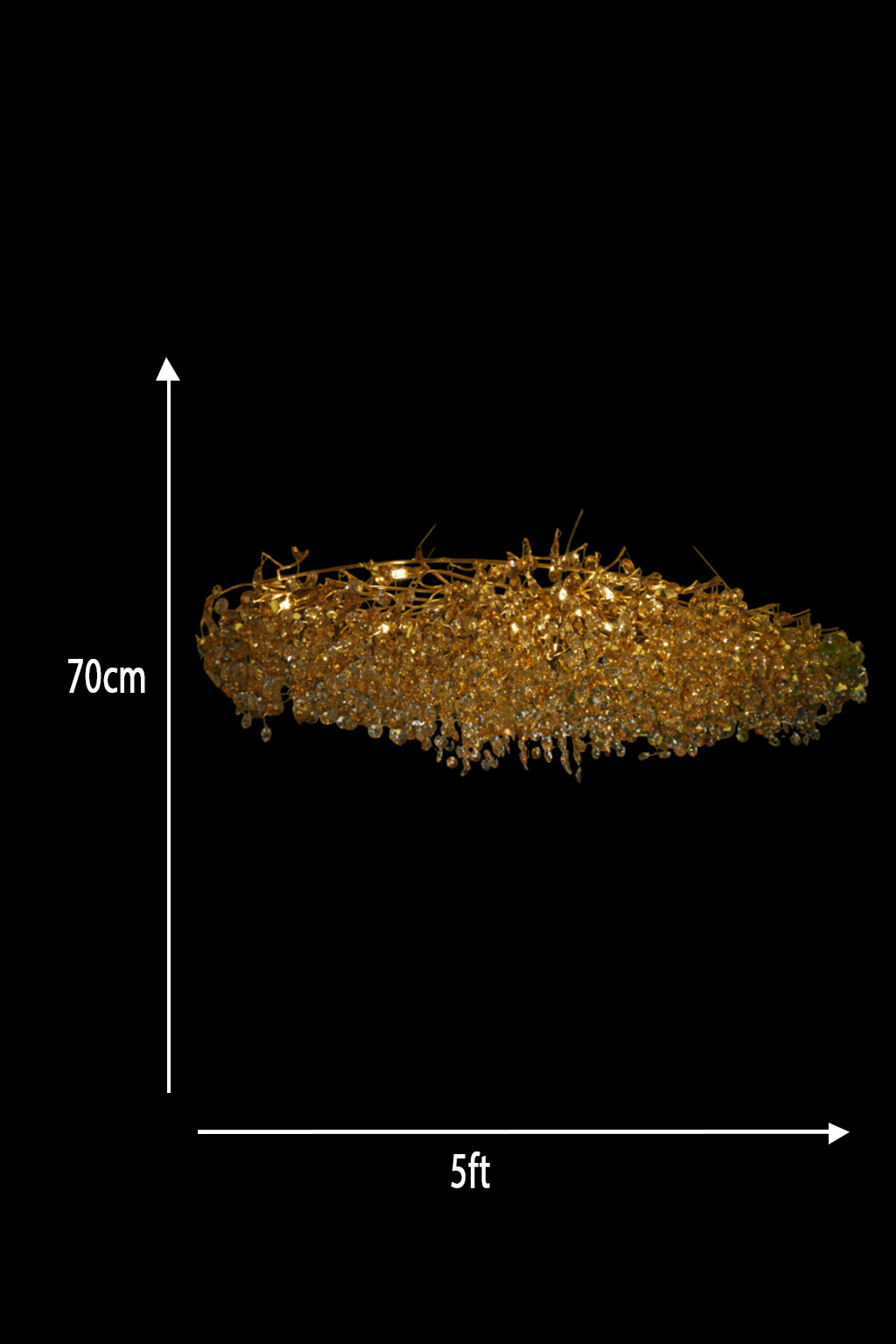 This chandelier features a dense arrangement of crystal elements, resembling a blossoming floral branch. The design creates a voluminous, sparkling effect, offering a luxurious and nature-inspired ambiance. The organic form and the shimmering crystals suggest a contemporary take on classic crystal chandeliers. Product
