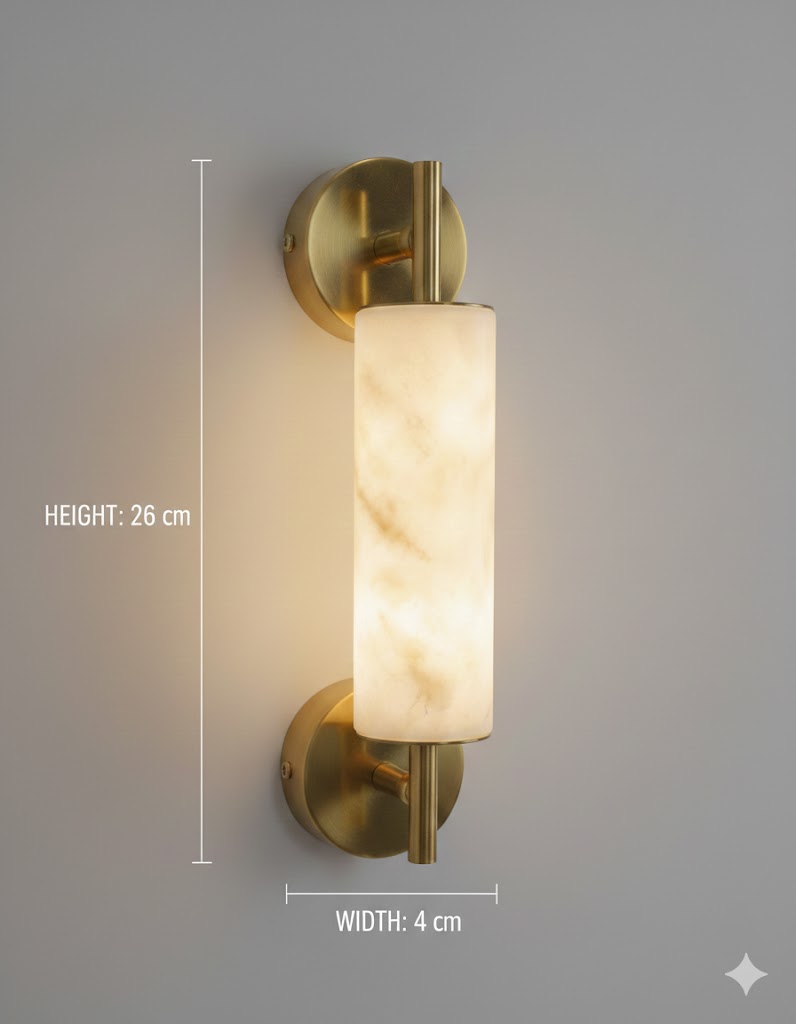 Glacier Pillar Sconce: Highlights the cool, icy tones of the veined stone.