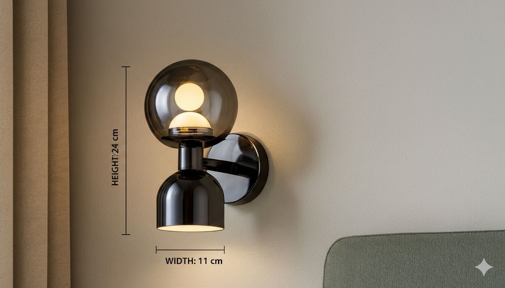 • The top section consists of a large, tinted smoke-glass orb that houses a soft, glowing internal bulb.