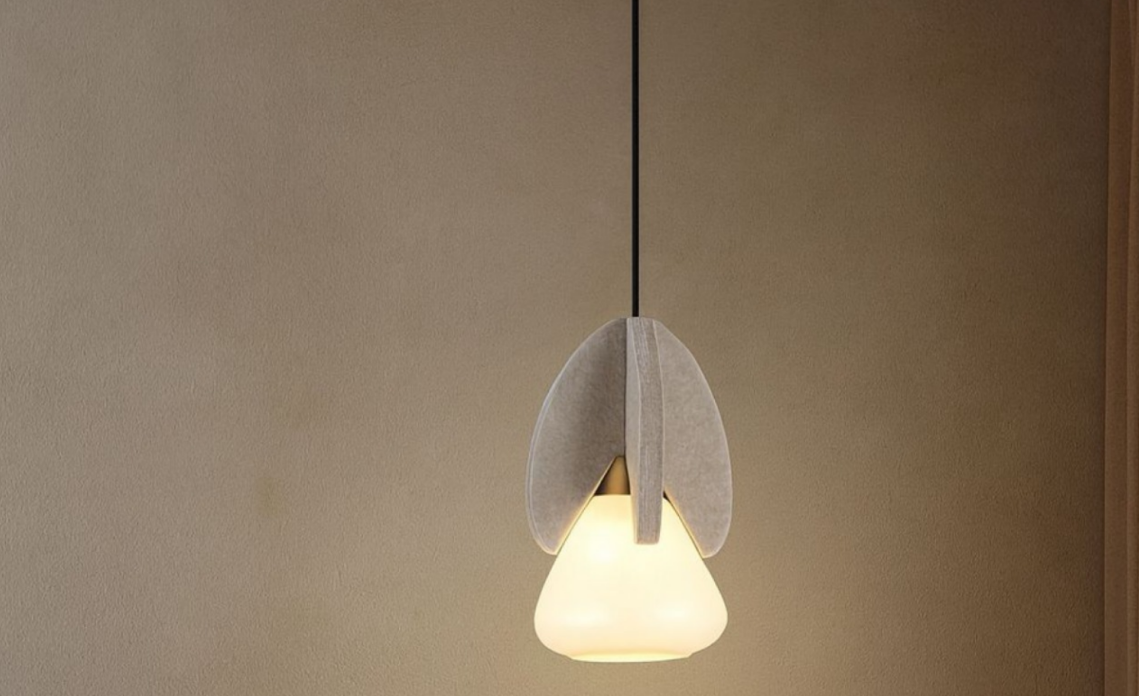 Is inspired by the quiet balance found in nature. A softly glowing glass form is framed by subtle, petal-like elements that shape and guide the light, creating a warm and soothing ambience.